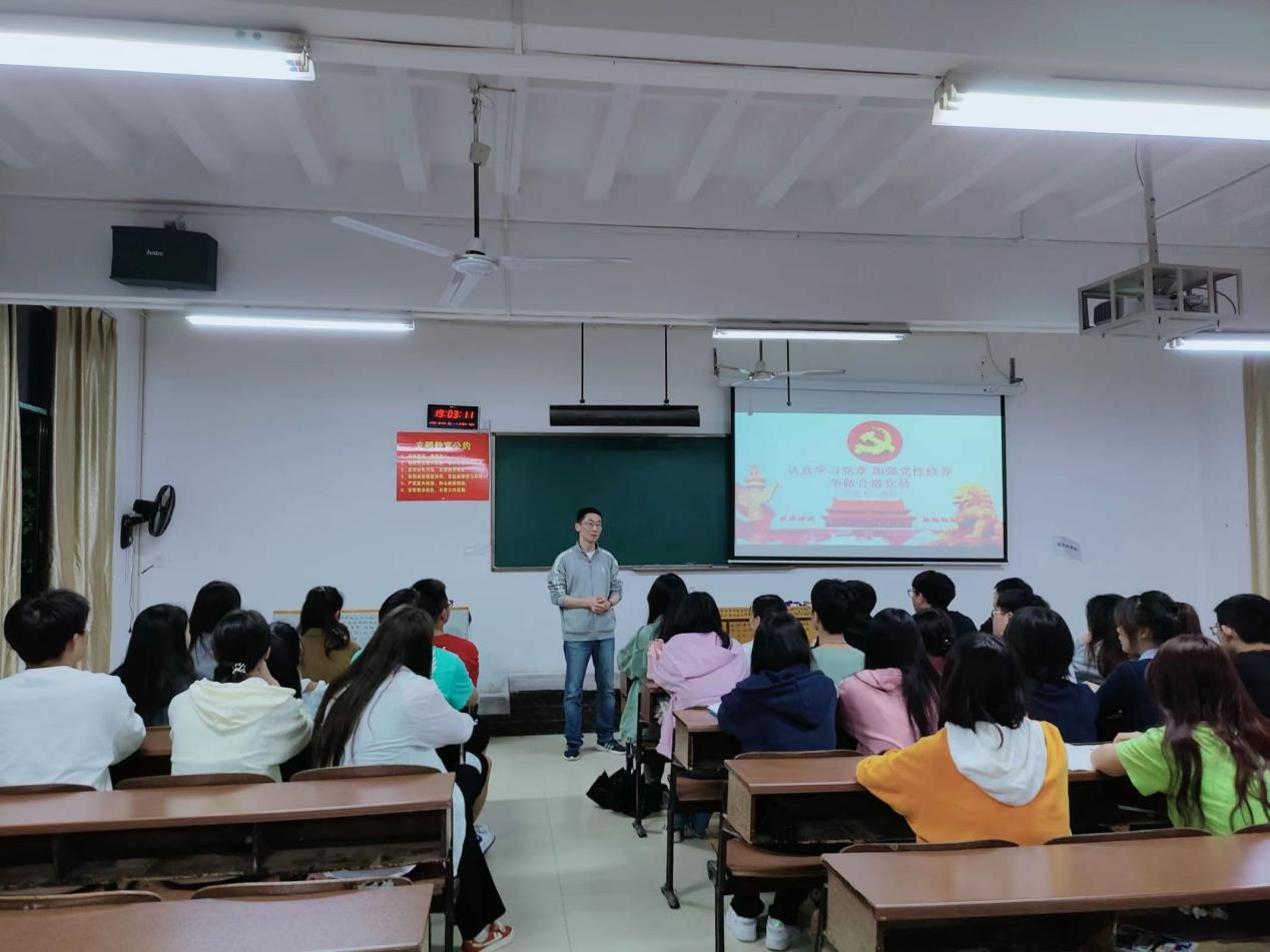 谭超老师对南校区入党积极分子强调,要认真学习党章,加强自身党性修养,争取做一名合格的党员。他以“中国宪法对中国法律的重要性”举例,来说明党章对于党员的约束力和高度权威地位。通过举例说明和历史陈述的方式,向入党积极分子讲述学习党章的重要意义。