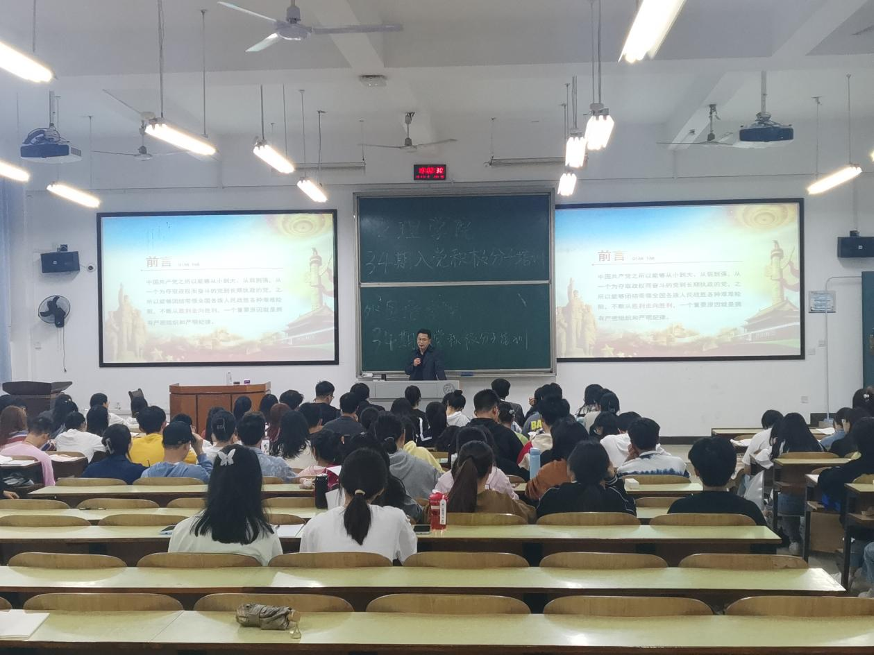 2023年4月11日晚,0638太阳集团官网管理学院分别于主校区D101教室和南校区4教201教室开展以“学习党章,加强党性”为主题的党课,传达学习党的二十大精神,深入学习贯彻习近平新时代中国特色社会主义思想。本次党课由管理学院党委书记余博老师和党委副书记谭超老师主讲,管理学院第34期入党积极分子全体参与。