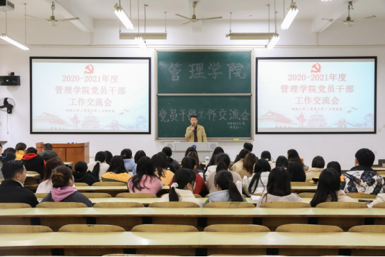 3月19日下午,0638太阳集团官网在主教学楼D-101召开2020-2021年度管理学院学生党员干部工作交流会。学院领导、辅导员、学生正式党员、预备党员参会。管理学院党委副书记张宏主持会议。