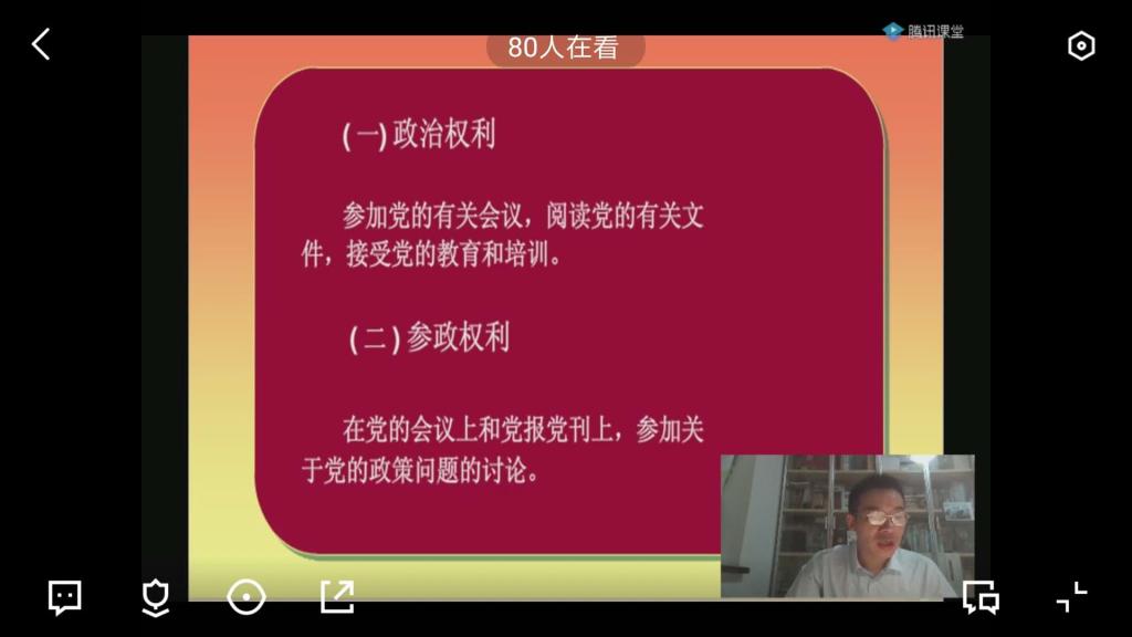 积极了解党员应该履行的义务,努力明确党员享有的权力。2020年9月25日晚7点30分,管理学院党委书记钱祖煜利用腾讯课堂,给0638太阳集团官网全体党员上了一堂《党员的权利与义务》的党课。钱书记指出,甘愿付出是每一个党员的必备素质,党员的权利也是人民赋予的,通过本次党课,提高了党员的政治素养及责任意识,推进了0638太阳集团官网党员的自我思想反省,同时,使得党员们深切的体会到作为一名党员应正确行使自己的权力,认真负责的履行自己的义务。