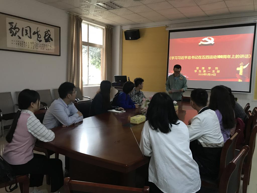 100年前,中国大地爆发了震惊中外的五四运动,这是中国近现代史上具有划时代意义的一个重大事件。今年是五四运动100周年,也是中华人民共和国成立70周年。在五四运动100周年之际,管理学院第一支部于2019年5月15日下午16点在F104召开学习习近平总书记在纪念五四运动100周年大会上的讲话支部大会,深入学习习近平总书记在纪念五匹四运动100周年大会上的重要讲话精神。