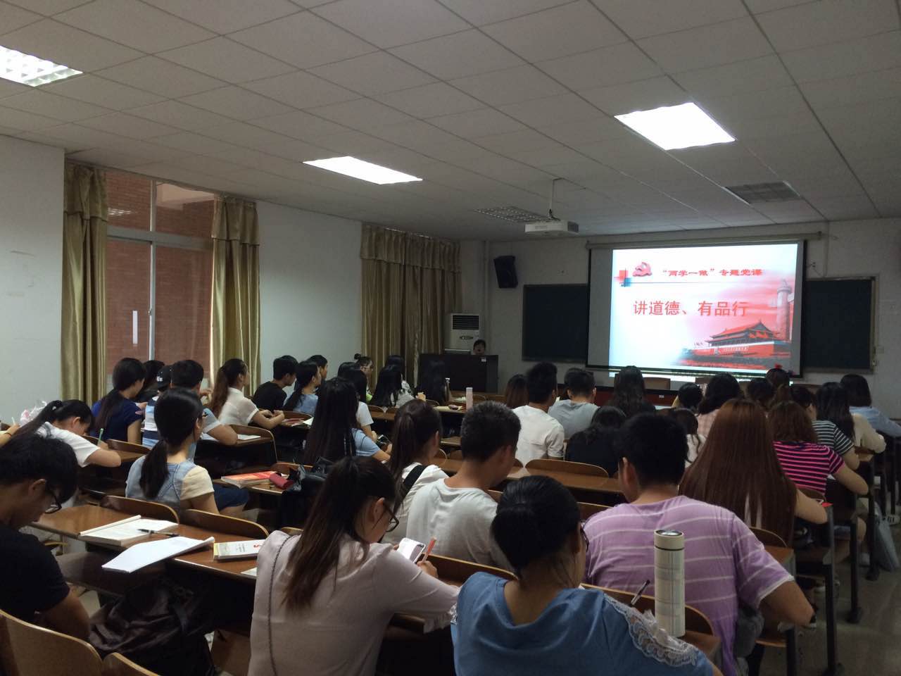 2016年6月29日上午9点,管理学院学生支部13、14、15级共59名学生党员,在g505进行了“两学一做”学习系列活动专题三“讲道德、有品行”的党课学习。会计支部书记周艺老师主要从三个方面阐述了党课的主要内容:一是讲道德、有品行的时代意义,二是共产党员应当具备怎样的道德品行,三是如何做到将道德、有品行。