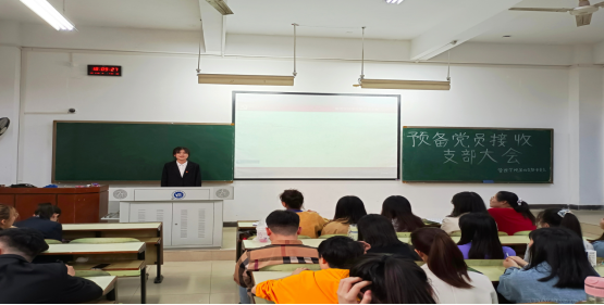 宣布支部决议后,预备党员代表曹美玲表明自己的态度和决心:“非常高兴今天能够站在这里作为预备党员代表发言,今后我将继续严于律己,把党放在自己的心头,将家国情怀践行于生活中的每一件小事,正值青春华茂,我会努力打造自身的过硬本领,为祖国续写属于自己的青春华章!”