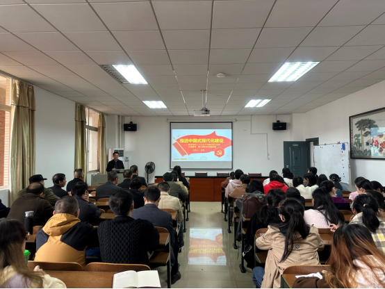 2022年11月15日下午,管理学院党委书记余博在G505讲授了一堂以“推进中国式现代化建设”为题的党课,给全院教师解读了党的二十大关于中国式现代化的本质要求、重大原则和战略举措的内容。