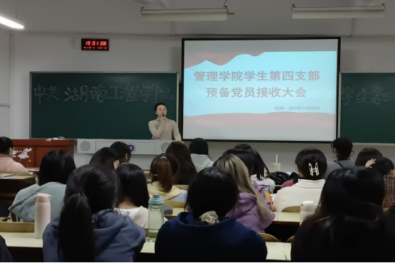 为把优秀青年学生凝聚到党的队伍中来,11月20日,管理学院学生第四支部在C-203顺利召开2022年下半年预备党员接收支部大会,本次会议由支部书记陈景楠主持,全体党员参会。