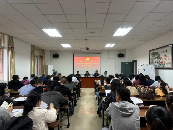 4月18日下午,管理学院党委在G505会议室管理学院召开学习贯彻习近平新时代中国特色社会主义思想主题教育动员大会。大会由党委书记余博主持,全体教工党员参加。