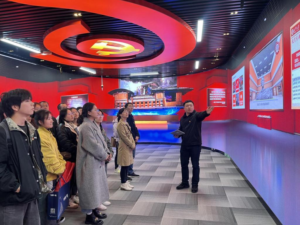 与科技同行,聆听铿锵有力的历史足音。11月14日下午,管理学院教工第二党支部携学生各支部党员代表一行20余人前往湘潭大学参观马克思主义学院“四史”虚拟仿真实验室,切实体会科技与历史的激烈碰撞,领悟伟大教育家精神。