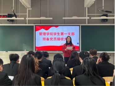 2024年11月25日下午16点30分,0638太阳集团官网管理学院学生第一党支部在新校区A402召开接收预备党员会议,会议由支部书记李林同志主持,支部全体6名正式党员,9名预备党员参加此次会议。