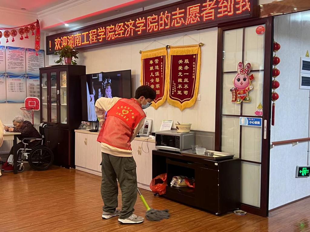 在敬老院负责人的组织和引导下,学生党员宣传健康养老知识,帮助打扫院内卫生,整理内务,打扫房间,陪同老人下象棋,与老人亲切地聊家常,倾听他们的故事,详细了解他们的生活情况和健康状况等,敬老院里欢声笑语,其乐融融,让老人们感受到了温暖与关怀。