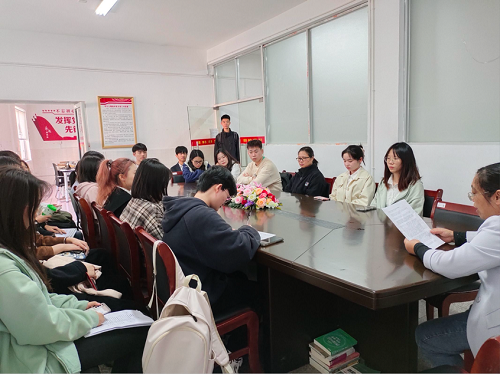 2023年11月24日中午,经济学院学生党支部全体党员在亲民学生公寓“一站式”学生社区临时党支部开展理论学习,学习中央金融工作会议精神,学生党支部书记李军花带领学生党员一起研读。