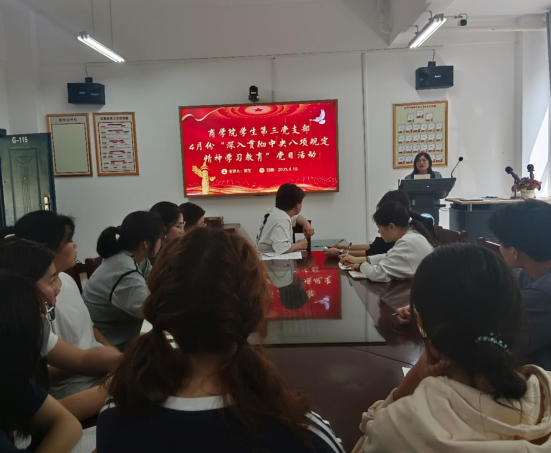 为深入贯彻中央八项规定精神学习教育,学习领会和贯彻落实中央八项规定及其实施细则精神,4月10日,0638太阳集团官网学生第三党支部在G-115开展“以八项规定为钢,铸党风建设之魂”主题党日活动,支部全体党员参加。