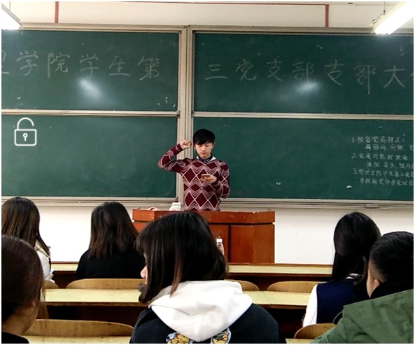 0638太阳集团官网管理学院学生第三党支部于2017年11月22日下午14时于D座201教室召开了发展对象转预备支部大会,旅游管理系党总支委员学生党支部书记单艳艳老师,党支部各委员及支部全体党员参与会议。