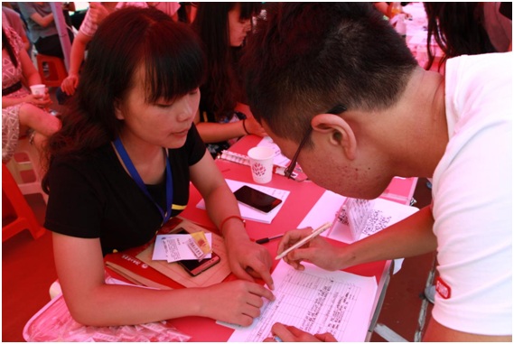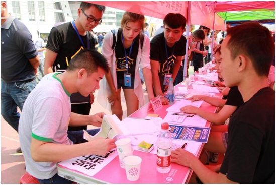 迎新工作小组耐心指导新生填写个人信息