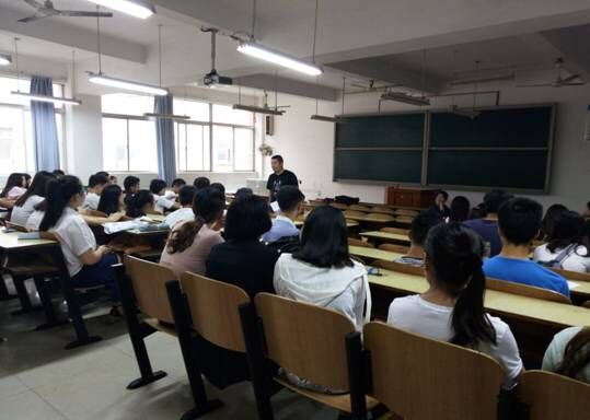 2016年7月4日中午12:20点,管理学院大一至大三各班班长、团支书、学习委员,以及学生会主要干部在主校区教室D201内进行了七月份月讲评会议。院学办主任罗荃、辅导员宋志航老师担任讲评人,副书记钱祖煜主持本月讲评会议。