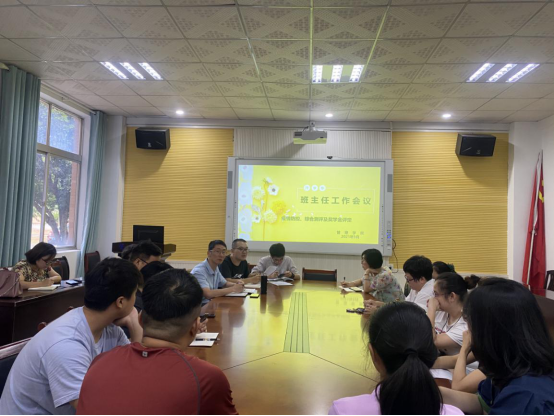 会议主要内容为:暑期大家访活动的完成情况、开学工作要点、新冠疫情防控问题、班委换届、学费催缴、校级奖学金评定、学院心理问题学生关注、辅导员和班主任下宿舍的情况。黎博讲解了奖学金评定工作的细则,强调了疫情防控的重要性和应急处置流程,辅导员和班主任要加强心理健康知识的宣传教育,在日常工作中要做到一切为了学生着想,密切关注学生动态,与家长多沟通,争取从多方面保证学生正常的在校学习、生活。