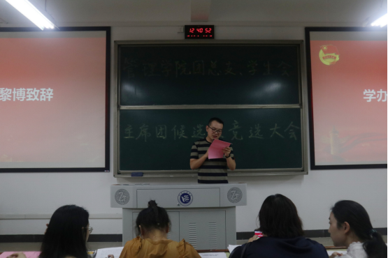 竞选分为竞选演说和问答两个环节,邢文静、张馨月、熊旭、简新武、裘丰榕、卓佳伟、宾梓蓉、陈冉等八名竞选人依次上台。在竞选演说环节,他们分别从以往的工作实践,联系所竞选职务的特点,在总结过去工作的“得”与"失"的基础上,提出了富于创造性和建设性的工作设想和方案,激情的演说赢得阵阵掌声。在问答环节中,各位选手现场抽题,即兴回答,充分展现了选手的表达能力和对学院学生联合组织工作的理解与认识。