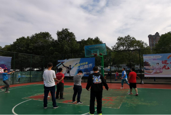 志愿者和学员们一起打篮球