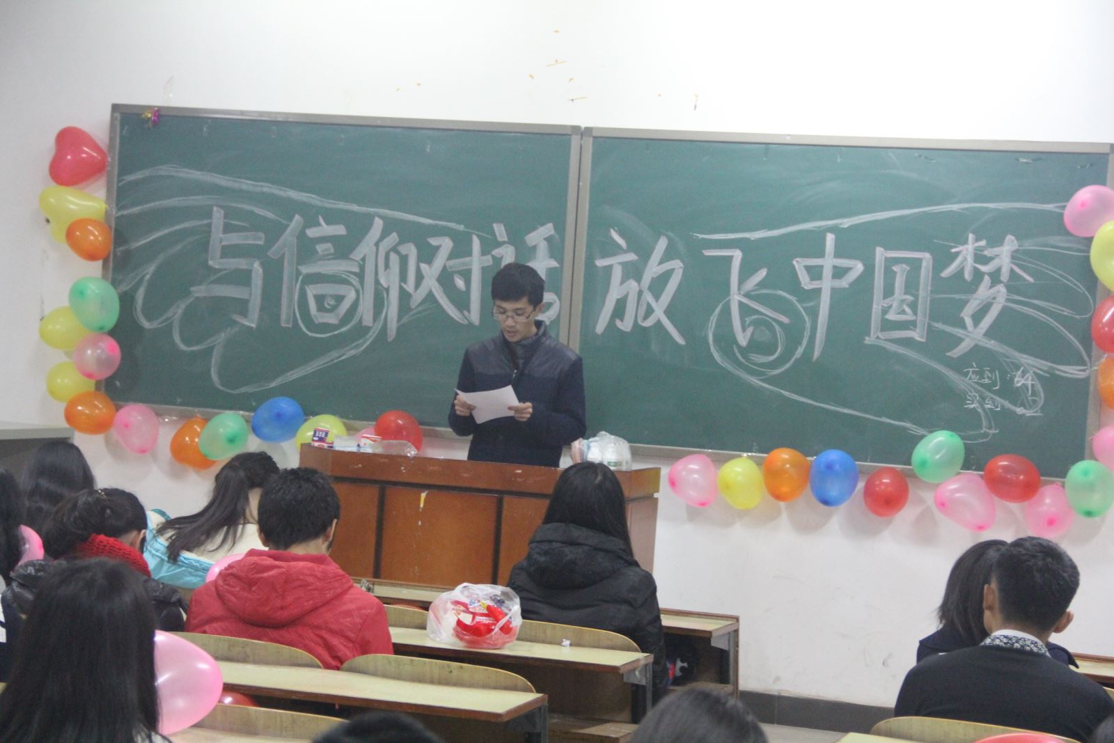 11月26号晚,管理学院于教学主楼B座开展了一场“与信仰对话,放飞中国梦”为主题的团日活动,此次活动在管理学院大一、大二各班级内开展,活动由管理学院学生会组织部组织,各班级团支书协助活动的开展。
