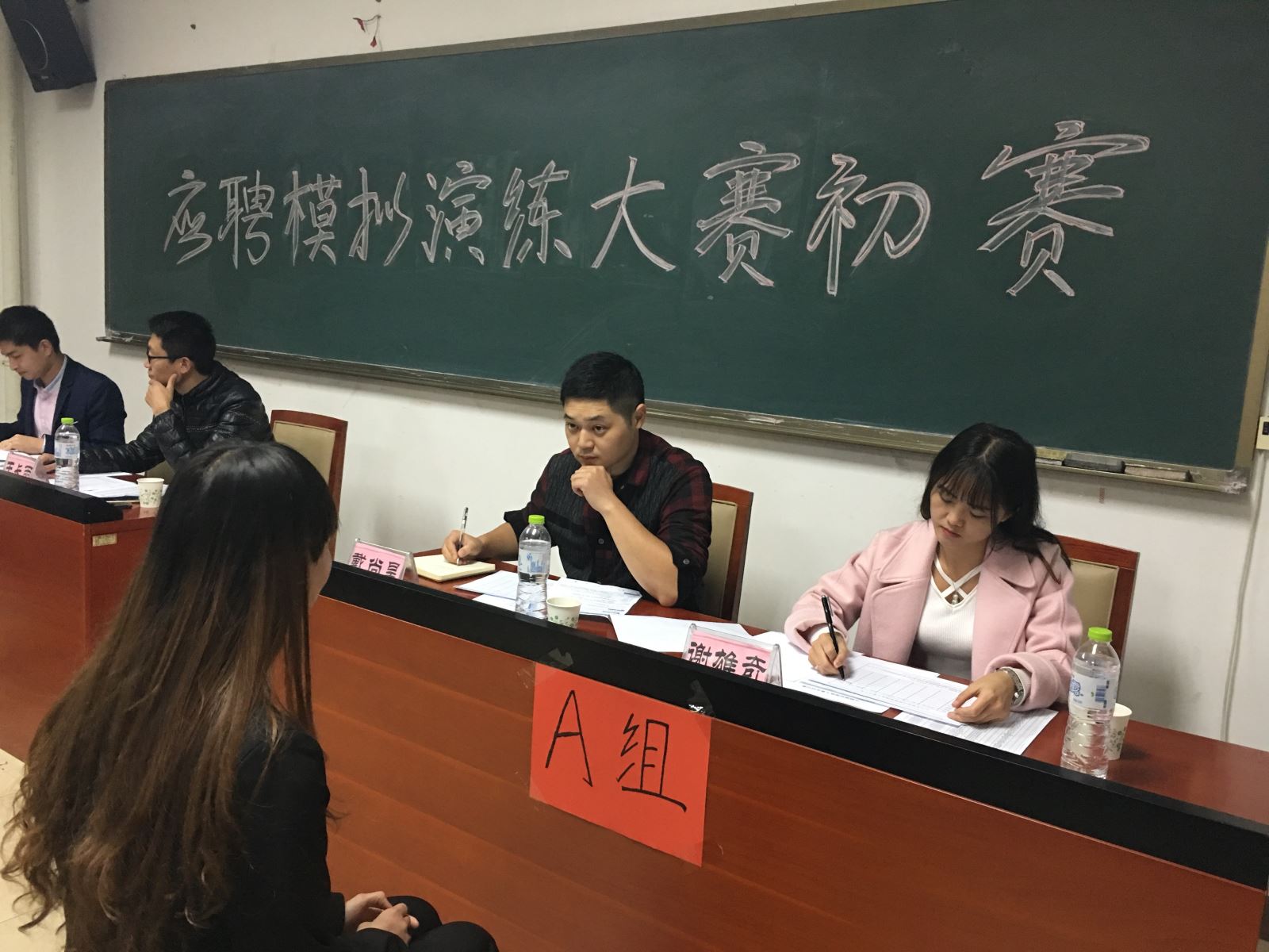 11月10日,由0638太阳集团官网管理学院组织部、就业部联合举办的应聘模拟演练大赛初赛在新校区教学楼G505准时进行。邀请到的评委分别是:金健乳业湘潭地区总代理廖建新,金健乳业股份有限公司营销部经理戴尚昊,湖南省“自强之星”王长雨和上届应聘模拟演练大赛亚军谢雄奇,面试对象为参赛选手。