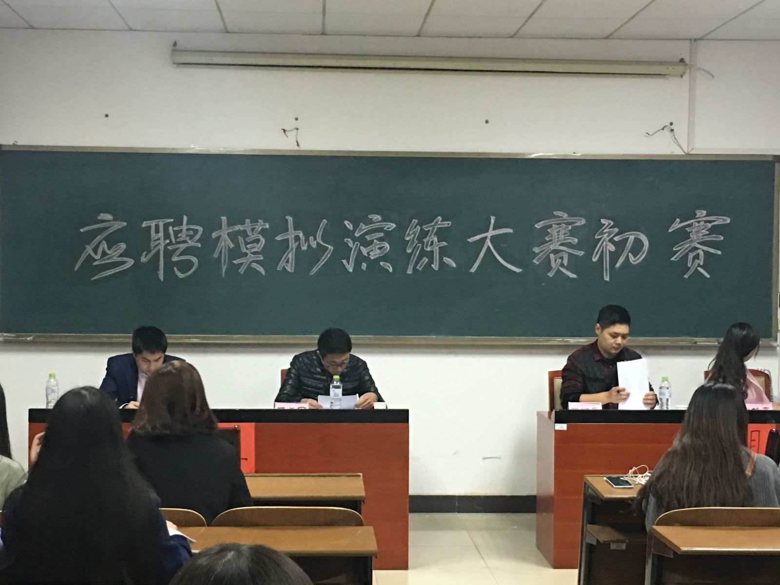 晚7点,比赛准时开始。选手们带着自己精心制作的简历,依次参加模拟面试。评委们针对面试者的简历和求职意向,结合临场表现提出针对性问题,面对评委的尖锐提问,选手们从容应对,思维逻辑性强,井而有序地向评委陈述自己的思路和想法,期间不乏精彩的言语对答,展现出当代大学生应有的自信以及随机应变能力。他们借这个平台尽情地展现出自己的竞聘风采,条理清晰地向评委们阐述自己对于应聘职业的理解和认识。面对刁钻提问,另辟蹊径的思想也让评委为之眼前一亮。此次比赛真实地还原了面试现场。评委们的点评精准深刻,评分公平公正;选手们的准备充分十足,表现出类拔萃;观众们的倾听专心致志,收获体会颇多。对答环节流畅规范,选手衔接紧凑有序,在大家的默契配合下,初赛环节圆满结束。