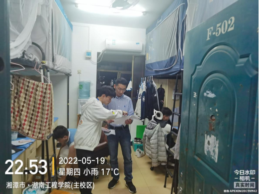 为响应湖南省教育厅对各高校学生宿舍管理要求,了解学生住宿情况,加强学生宿舍安全意识,2022年5月19日晚,管理学院全体辅导员在学院党委副书记谭超的带领下排查学院学生所在的滨江、学海、明德等16栋宿舍。