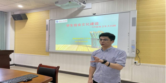 为了更好建设管理学院积极向上的精神风貌,不断提高寝室生活质量,完善学生们的精神追求。9月26日,管理学院学生工作办在主校区F104举行“学生宿舍文化建设”会议。出席会议的有学办辅导员罗蒙,学生会干部以及管理学院各班班长。
