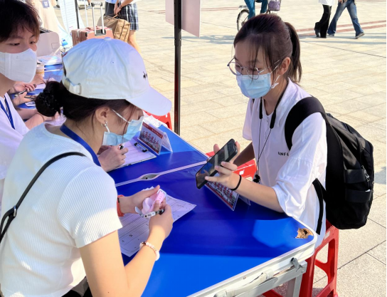迎新现场,学院全体辅导员和新生班班主任热情接待了前来报到的新生,欢迎他们加入管理学院这个大家庭,并为他们解疑答惑,同时,也一再提醒他们要注意保护个人财产安全,及时下载防诈骗APP,提供防范意识,谨防受骗。