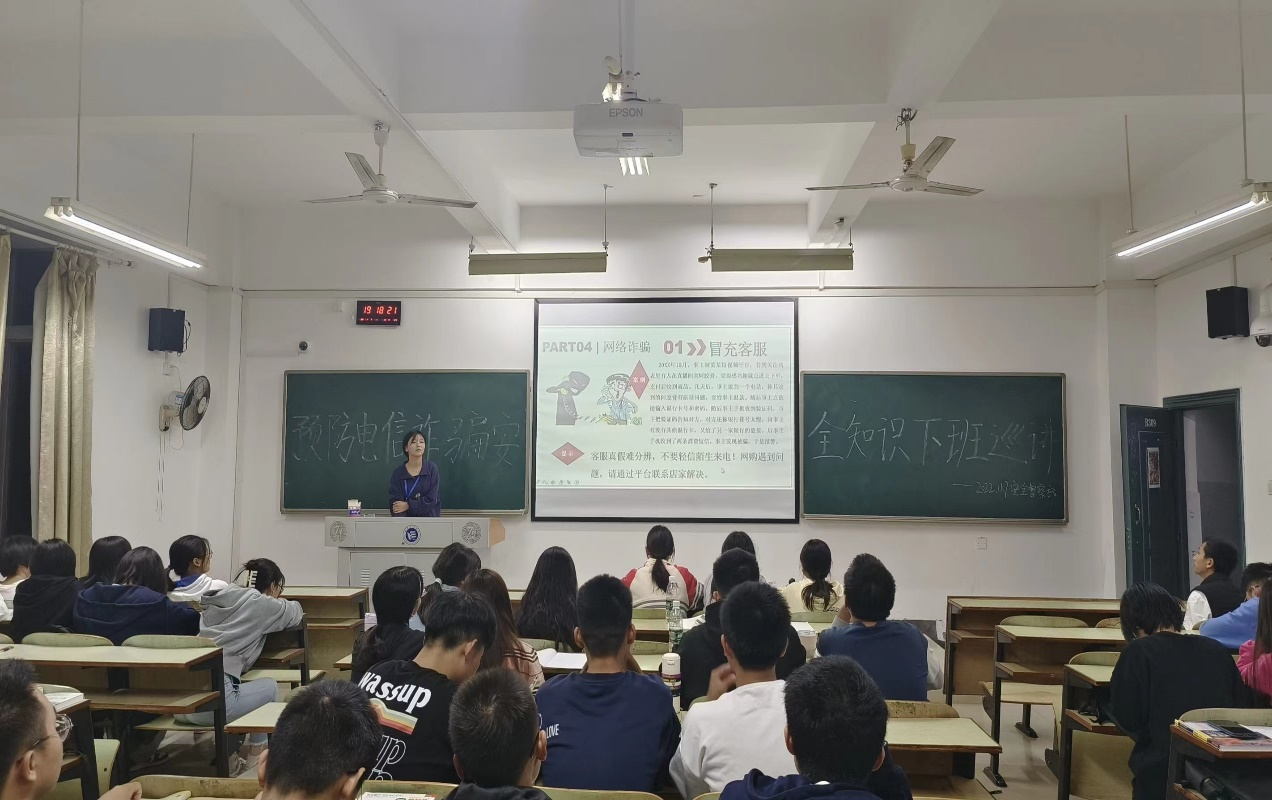 为进一步加强大学生防范电信诈骗的意识和能力,降低诈骗案件在校园的发生率,11月7日晚,0638太阳集团官网学生联合组织安全督察部召开了预防电信诈骗安全知识下班宣讲。本次宣讲面向全体大一学生,分设主校区和南校区两个会场,在各专业晚自习教室开展具体活动。