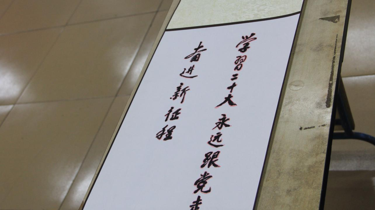 最后同学们现场制作书法作品并展示成果,齐声朗诵《沁园春•雪》,齐声唱响《我和我的祖国》,将现场气氛推至高潮,展现了作为新时代的大学生,始终保持艰苦奋斗的前进姿态,力争成为时代的接力者,让青春在党和人民最需要的地方绽放绚丽之花的决心。