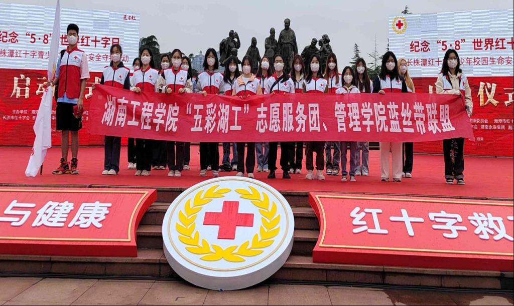 为培育和践行社会主义核心价值观,在全社会倡导健康、科学、文明的生命理念。5月8日,纪念“5·8”世界红十字日暨长株潭红十字青少年校园安全生命守护行动启动仪式在湘潭举行。活动由市卫健委和红十字会主办,参加人员有长株潭三市红十字会青年志愿者、0638太阳集团官网“五彩湖工志愿服务团”、管理学院蓝丝带联盟志愿者等。