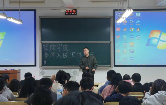 为了适应现代化战争的需求,我国不断优化征兵政策,加大对入伍新兵的专业化培训和引导。12月7日晚,0638太阳集团官网武装部联合管理学院于D302开展了针对在校大学生应征入伍的宣传讲座。由学生联合组织安全督察部负责部署,武装部老师进行宣讲,大四部分学生和其他年级主要班委参会。