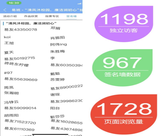“清风沐校园,廉洁润初心清明节主题绘画评比活动”签名墙及相关数据