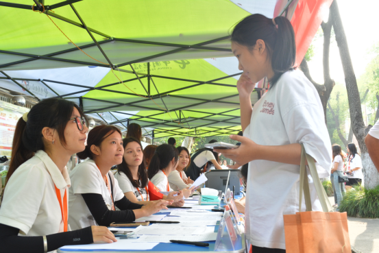 在各迎新点,工作人员和志愿者们忙碌而有序地穿梭其间,为新生提供全方位的帮助和服务。校外迎新接待站设在了高铁站、火车站等交通枢纽,志愿者们细心引导新生乘坐大巴前往学校。步入校园,下班党员、学生会干部及朋辈辅导员主动上前,帮助新生搬运行李,引导他们前往报到点并完成入学手续。在报到现场,志愿者们耐心解答新生们的疑问,详细介绍入学流程和注意事项,确保每位新生都能顺利入学。
