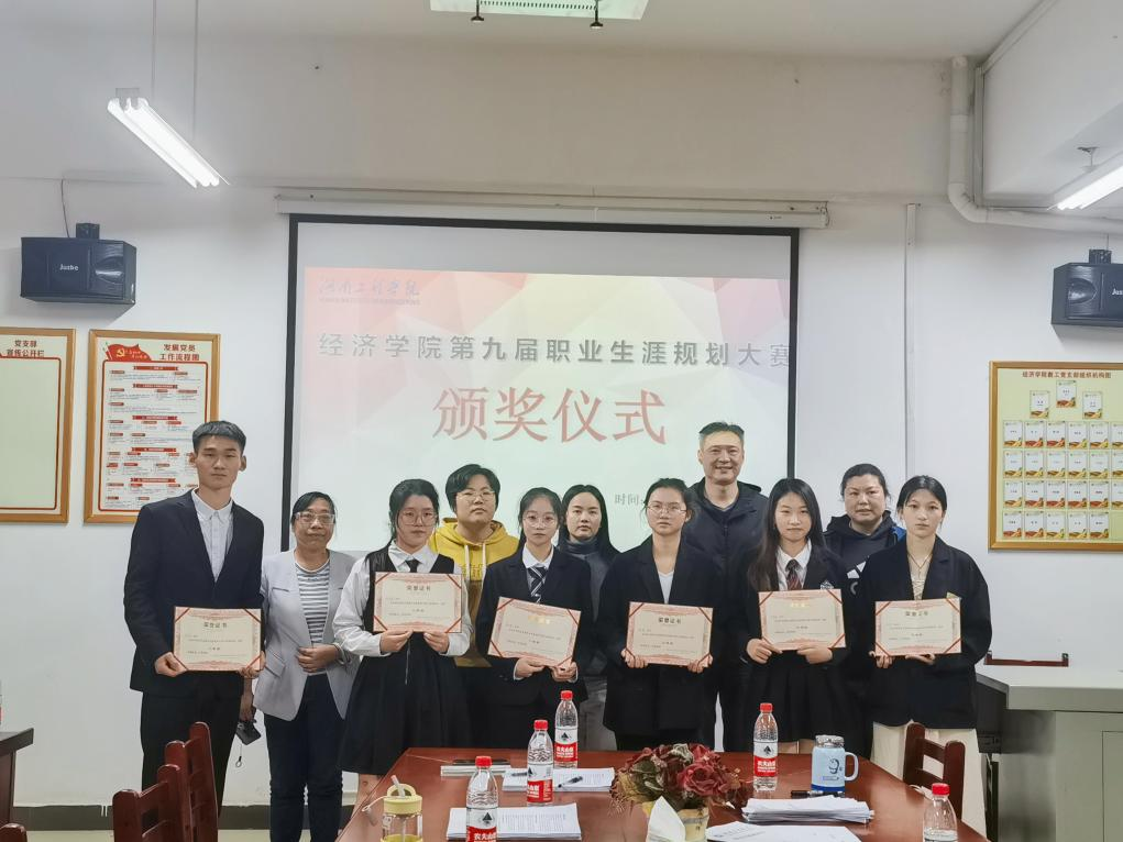 2023年5月10日12:25,经济学院在G-115会议室举办了第九届职业生涯规划大赛。经济学院党总支副书记卢时光、经济学院学办主任戴晶晶、经济学院辅导员李军花、就业专干刘佳馨、管理学院包海燕出席并担任评委,2021级共十一名同学参加了本次比赛。