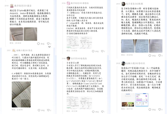 活动期间,参与学生展现了高度的自觉性与坚持力。他们不仅每日按时完成学习计划,更积极通过图文记录学习过程、分享心得,在虚拟学习社区中形成了“比学赶超”的积极氛围。这种借助技术工具的“云端”打卡模式,有效打破了时空限制,为期末复习季的学生们提供了便捷的自我管理工具和同伴激励的平台。