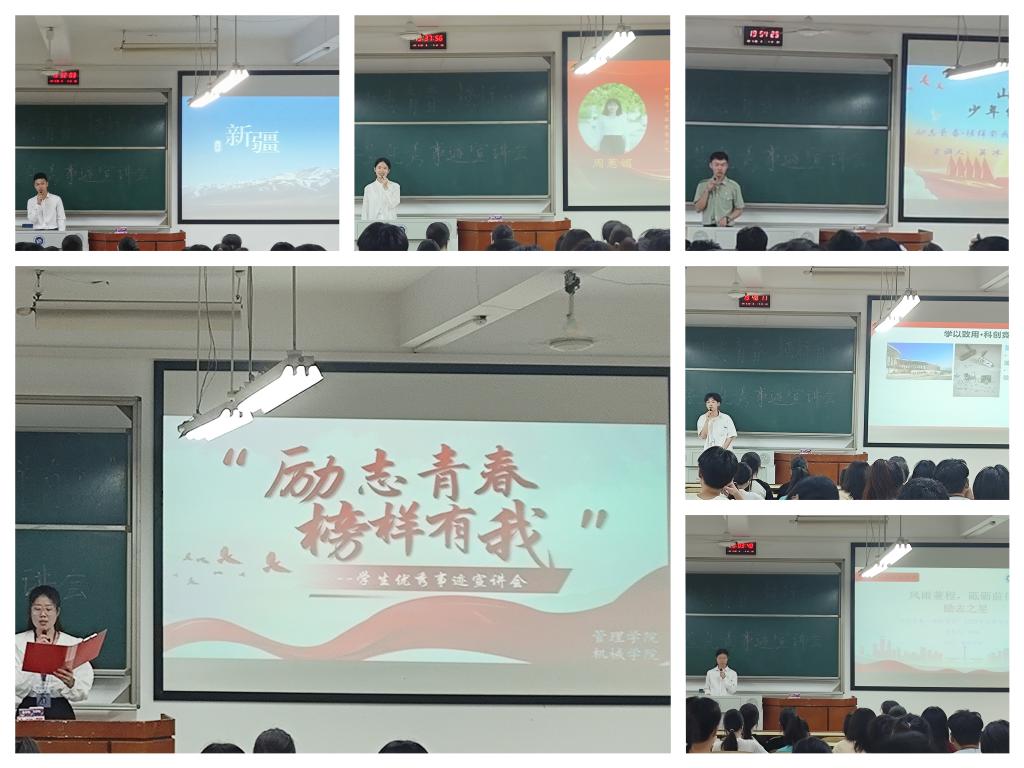 为体现资助育人成效,充分发挥优秀学生的榜样引领作用,引导激励学生奋发自强、立志成才、感恩奉献。5月30日晚19点30分,管理学院与机械学院在主教学楼D302联合开展了“励志青春,榜样有我”学生优秀事迹宣讲活动。