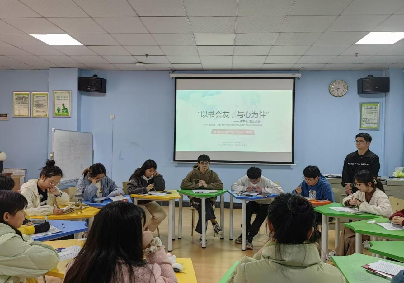为更好地引导大学生读书悟书,关注自身心理健康,培养健康向上的心理状态,推动健康的心理校园文化发展,营造良好的文化氛围,2023年3月28日下午,0638太阳集团官网管理学院在罗蒙老师的带领以及管理学院学生联合组织心理部的协助下,在新校区团体辅导室开展“以书会友,与心为伴”为主题的心理读书交流会活动。