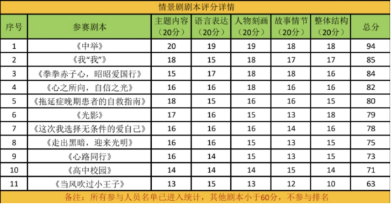 活动最后,评委们根据评分细则,从主题内容、语言表达、人物刻画、故事情节、整体结构五个角度对作品进行评定,共选出特等奖一名,一等奖一名,二等奖两名,三等奖三名,最终选出心理情景剧优秀剧本。此次大赛不仅为学生提供一个展现自我的平台,更在校园内掀起关注心理健康的热潮,对心理健康知识的普及起到了促进作用。同时也加深同学们之间的相互理解和支持,为构建和谐校园环境做出贡献。