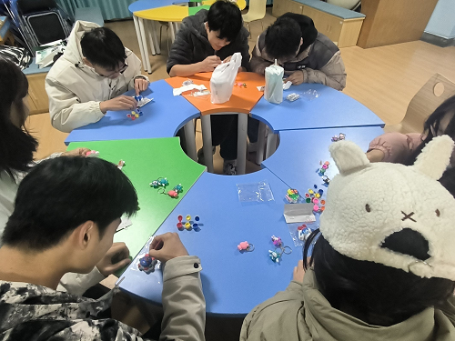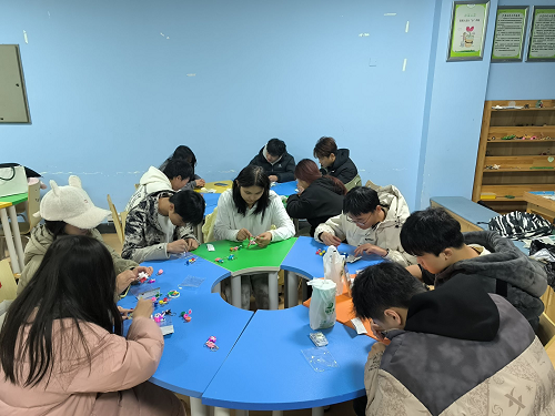 活动围绕人际交往主题展开,设计了多个富有创意和互动性的环节。“心有灵犀”热身小游戏中,同学们两两一组,通过动作和表情传递词语,增进了彼此的熟悉度,锻炼了非言语沟通能力。观看《小王子》心理健康视频后,大家分组用积木搭建人际关系场景模型,强化了团队协作与沟通技巧。“用心领听,鼓励交流”环节,同学们匿名写下鼓励话语,传递正能量,还通过涂色石膏娃娃表达心情。手绘立体星球环节,同学们发挥创意,展示作品并分享人际交往期望。活动末尾的“钥匙扣连环套”游戏,则进一步促进了参与者之间的交流互动,让大家在游戏中加深了对彼此的了解。团辅活动在轻松愉快的氛围中落下帷幕。