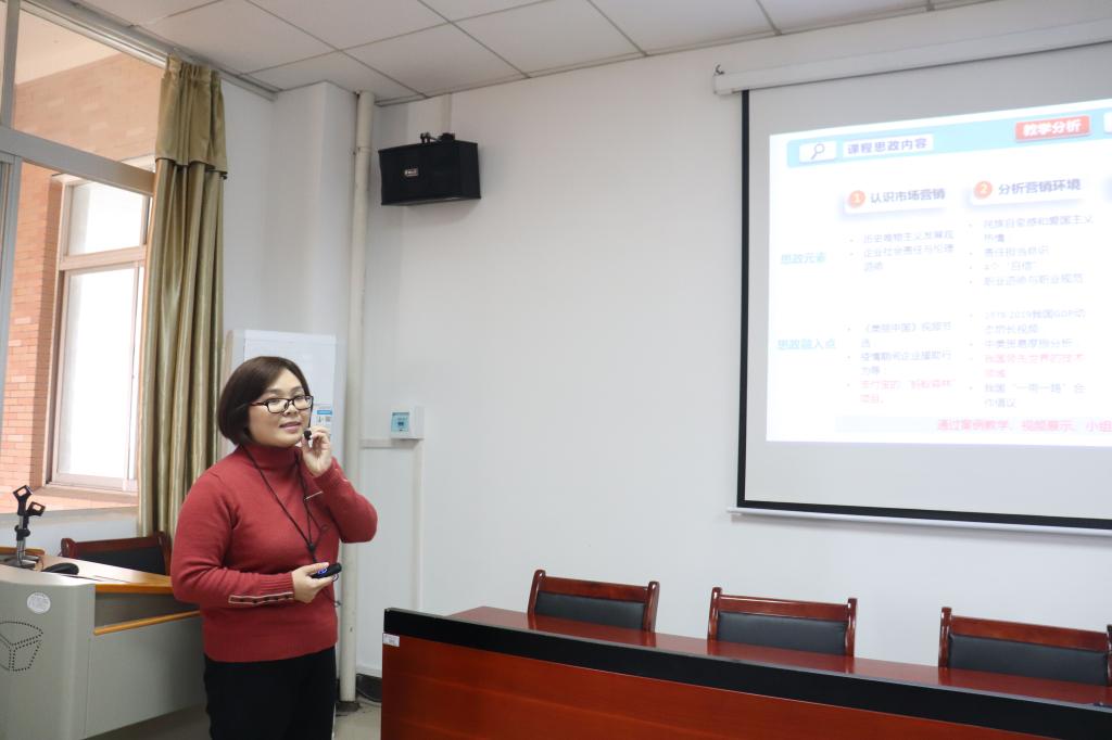 此次比赛考查教师对专业课程的整体把握能力、先进教学方法的运用能力以及专业课程思政元素的提炼能力与融合能力。比赛按照省赛标准分为三个环节——10分钟的教学设计展示、5分钟知识内容讲授、5分钟专家提问。7名参赛选手经过激烈比拼,电商专业雷芳芳老师《基于5E模式的课程思政教学——以“市场宏观环境分析”知识点教学为例》、人力专业张世免老师《基于“四化”的人力资源管理课程思政教学——以“招聘广告设计存在的问题”知识点讲授为例》脱颖而出,获得代表学院参加校赛的资格。