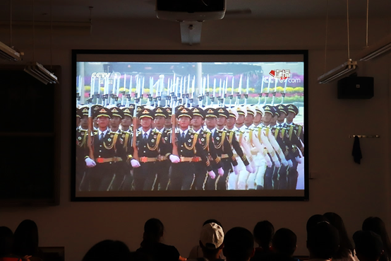 在阅兵直播进入尾声之时,同学们一起跟随直播高唱《我和我的祖国》;一起喊着“伟大的中华人民共和国万岁!伟大的中国共产党万岁!伟大的中国人民万岁!”的嘹亮口号,激动人心;一起送出“祝祖国生日快乐,繁荣昌盛”的美好祝福,至此,观看国庆大阅兵活动,圆满结束。