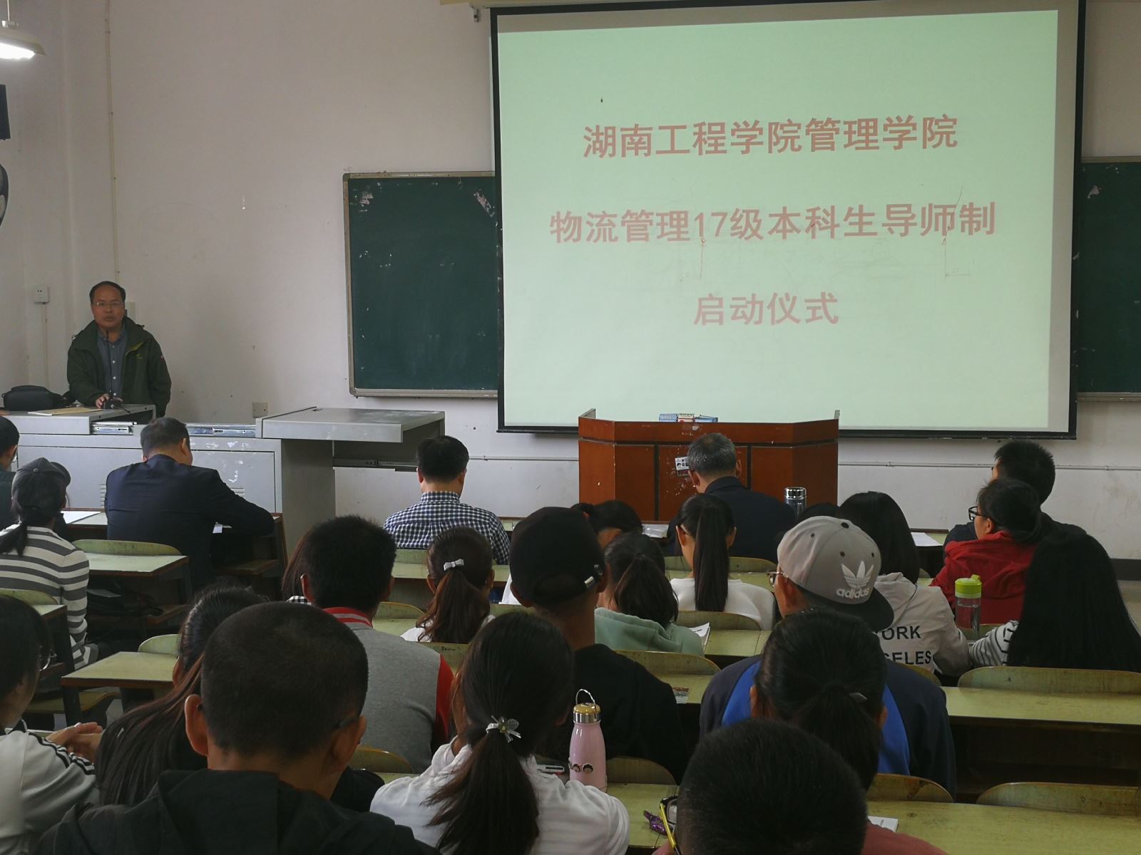 10月31日下午,管理学院在教学楼B-406举行0638太阳集团官网管理学院物流管理17级本科生导师制启动仪式。人事处处长、物流管理综合改革专业负责人吴振师教授、全体院领导、物流教研室全体教师以及物流管理17级69名新生参加了此次启动仪式。