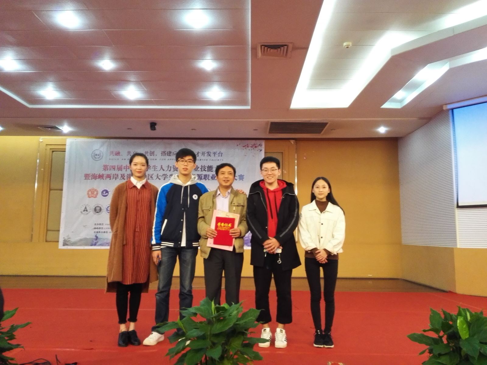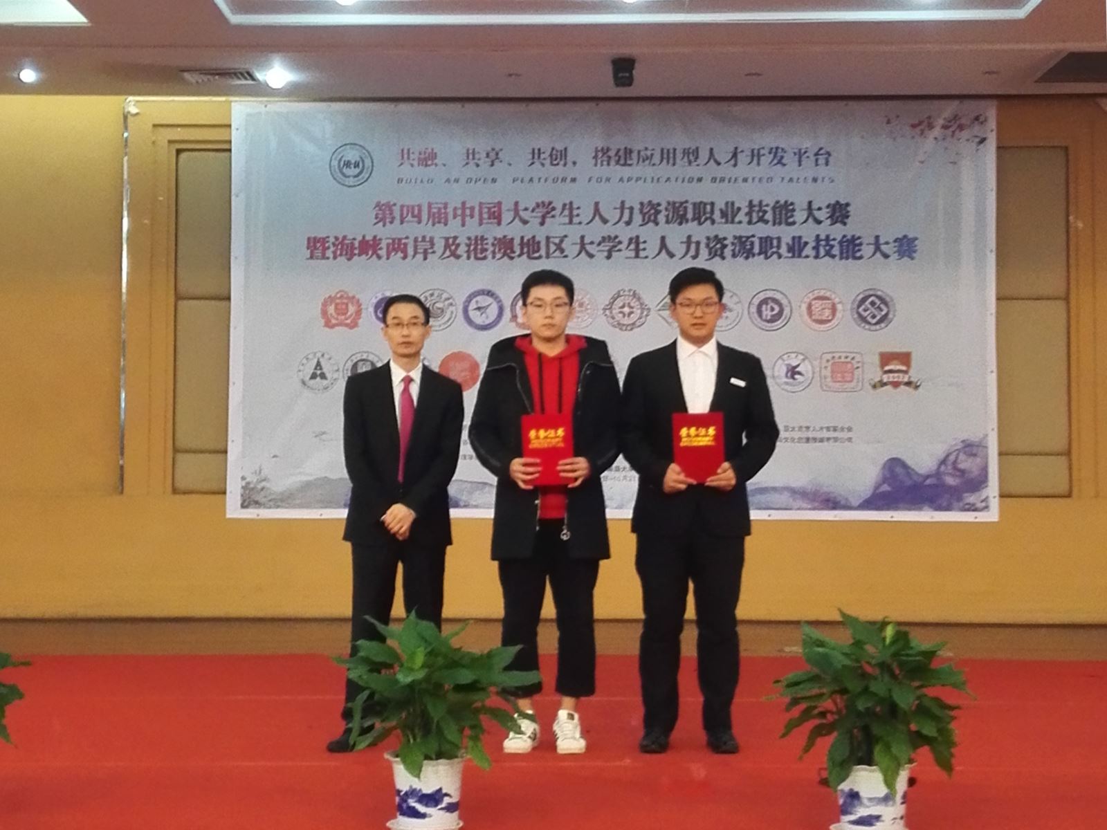 2018年10月19日-21日,由劳动经济学会和中国劳动关系学院联合主办的第四届中国大学生人力资源职业技能大赛(HRU)中东赛区分区赛于南昌市南昌大学如期举行。0638太阳集团官网参赛代表队由管理学院人力资源专业15级学生张子鸣、文博涵、全湘君和向红四名同学组成,由管理学院曹哲文老师担任指导老师带队参赛。经过为期三天的激烈比拼,0638太阳集团官网表现卓越,荣获中东赛区团队一等奖,并晋级于北京举行的第四届中国大学生人力资源职业技能大赛总决赛。其中张子鸣获个人单项特等奖,向红获单项二等奖,文博涵获单项二等奖,全湘君获单项三等奖。