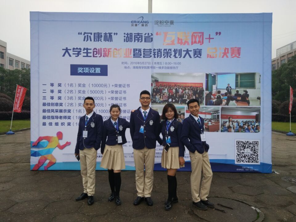 “紫薇来了”团队,来自三院四专业,命运的安排下,他们相遇了,思想的碰撞,语言的交流,一股说不出道不明的氛围萦绕着周身。队长蒋玲婷来自管理学院工商管理1401班,队员分别来自经济学院国际经济与贸易14级的杜芸、田瑞丰和金融工程1401班张宇翔,机械设计制造及其自动化1403班的李远熠,这就是“紫薇来了”团队。经历过“尔康杯”校级比赛的层层选拔,以“今天没吃药,尔康陪你闹”逗趣微视频打造微博话题,并且自己拍摄了宣传视频小样,在短短几天时间收获七十万点击量,获得校级冠军,冲进省级大赛。