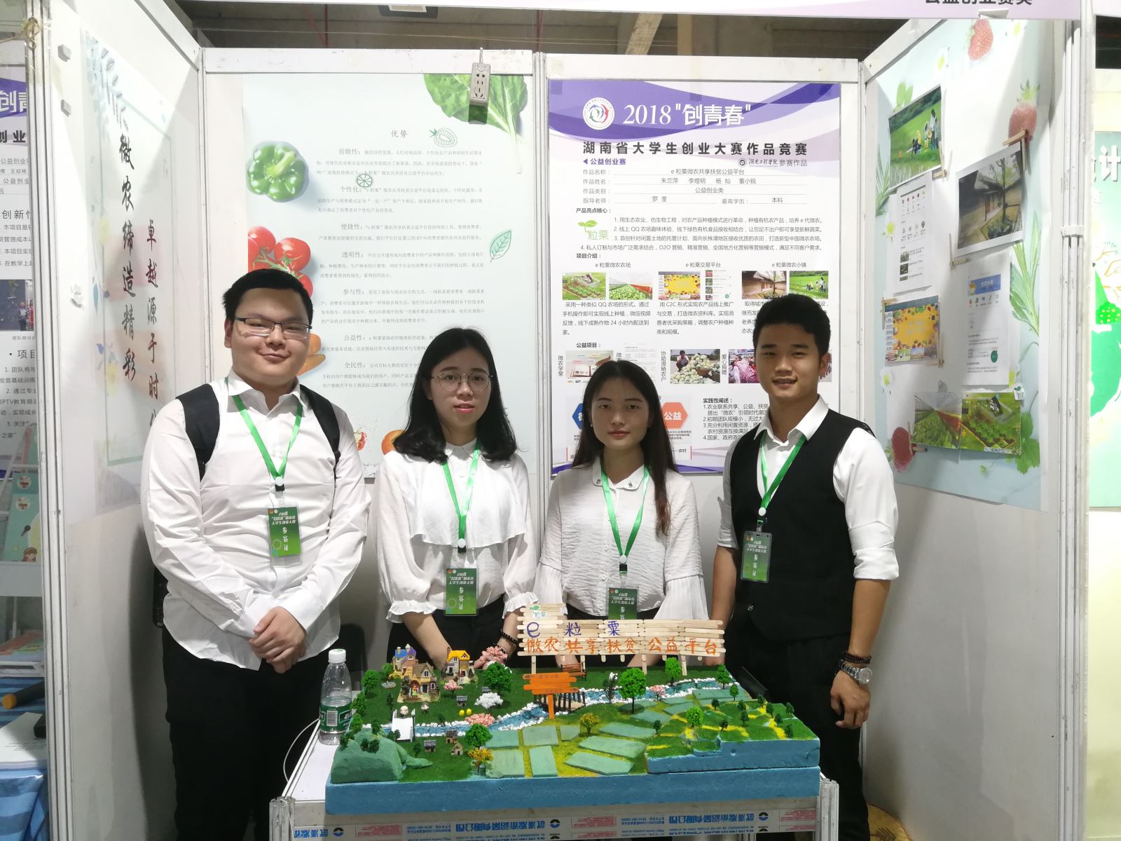 0638太阳集团官网朱兰萍 李煌明 杨灿 董小锐的作品《“e粒粟”微农共享扶贫公益平台》(罗荃老师指导);辜佳豪 黄成 申家宁 严敏 沈静 《“源生”环保公益有限公司》(朱文明老师指导)经过公开展示、专家评审等比赛环节的激烈角逐,勇夺本次湖南省赛事的铜奖。