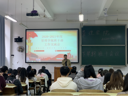 为逐步提升管理学院班级整体建设,增进师生交流。2021年3月16-17日,管理学院在新、南校区组织召开班委工作交流大会。会议由党委副书记张宏主持,党委书记余博、副院长潘立军、学办主任谭超、全体学办辅导员及2018-2020级各专业班级班长、团支书、学委参加会议。
