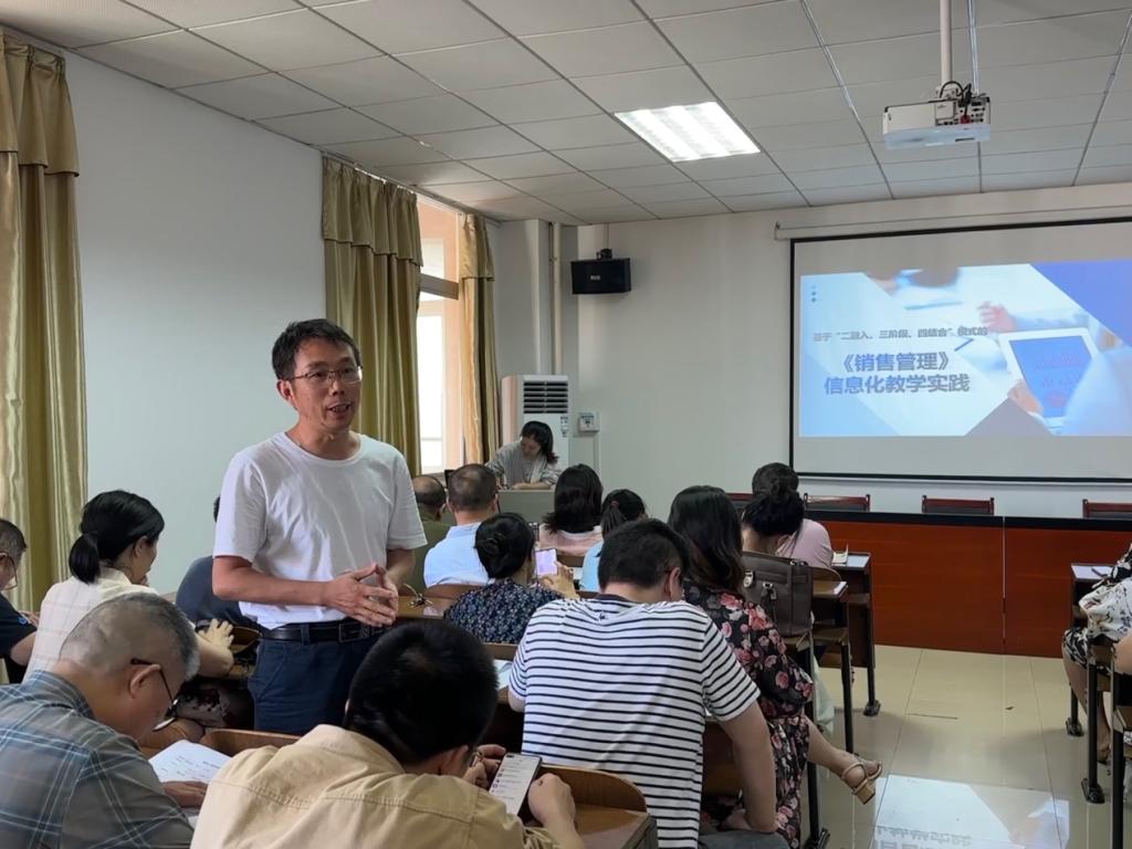 市场营销教研室主任朱春晖从信息化手段运用、PPT制作、教学环节设计等维度对肖老师的展示进行了点评和总结。他谈到,优秀的老师不仅要做到教学思路清晰,教学技艺娴熟,还要掌握灵活多样的教学方法,并充分利用多媒体课件等信息化教学手段。每位教师只有提高驾驭课堂的能力,打下扎实的教学基本功,才能真正的上好一堂课。