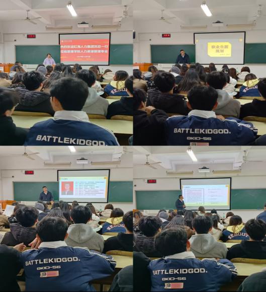 12月5日,人力资源管理教研室邀请了湖南红海人力资源有限公司湘潭分公司刘丁总经理给学生做了一场《职业生涯规划》的专题讲座。在引人入胜的讲座中,刘丁经理为同学们讲述了他的职业故事,为同学们求职之路提供了新思想,新理念,并运用人力资源管理专业知识,告诉同学们职业规划的重要性,让大家在大学期间进一步明晰职业发展目标,刘经理对同学们送上寄语:“尽快确定职业方向,少走一些弯路,祝大家早日实现自己的人生梦想!”