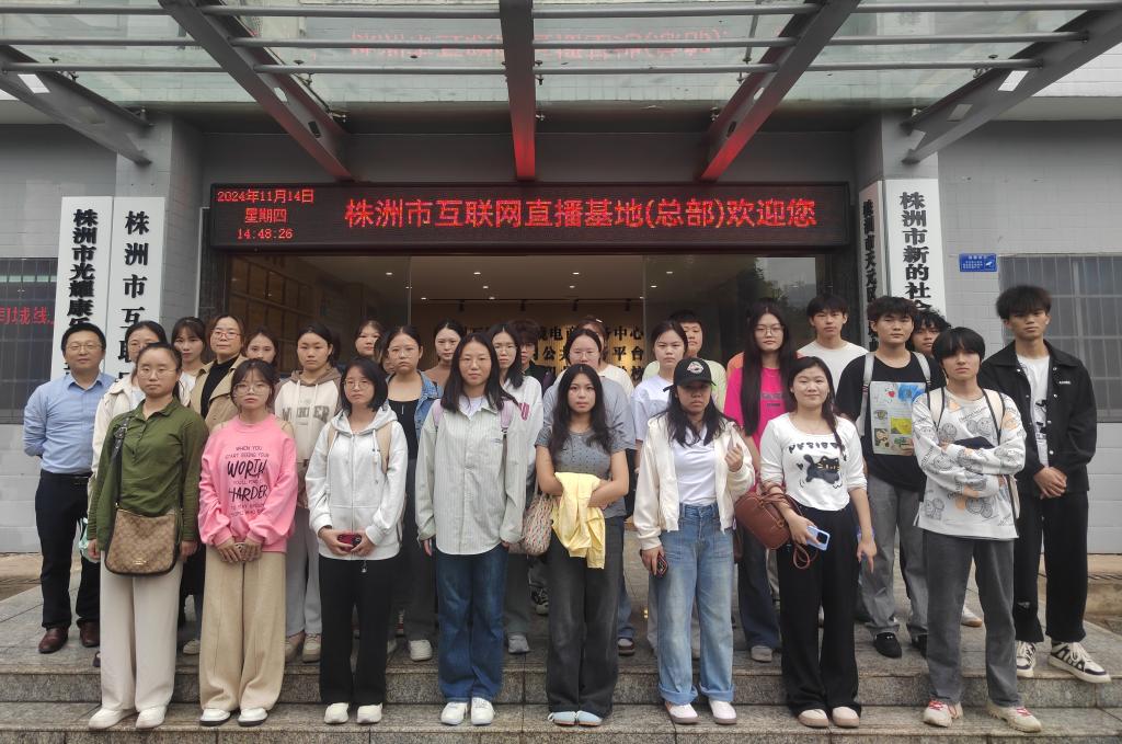 2024年11月14日,为增强电商专业学生对电商行业发展的认识,拓展实践视野,电子商务教研室在开展认识实习之际,组织0638太阳集团官网电子商务专业23级学生参观了株洲市直播基地、动力谷展示中心。