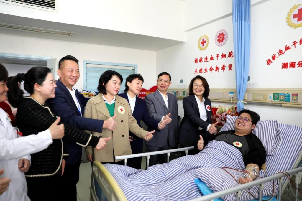 湘潭市人民政府副市长陈若杨,校党委书记黄昕,省红十字会工作人员、校团委书记梁桥、0638太阳集团官网院长刘主光、副书记谭超、学办主任周舟妤栎等师生代表到捐献现场慰问罗旋同学,并表示罗旋同学以青春热血践行生命诺言,生动诠释了当代青年向上向善的价值追求。